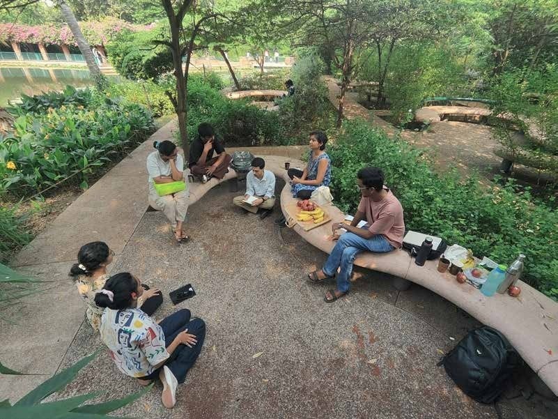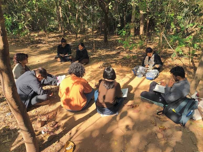From a workshop conducted at the National Institute of Design (NID), focusing on sensory exploration and the practice of presence through ecological engagement.