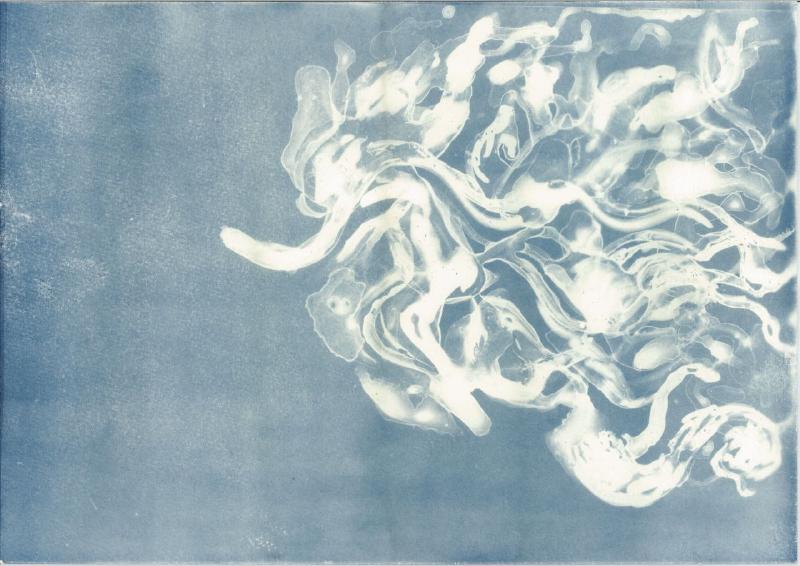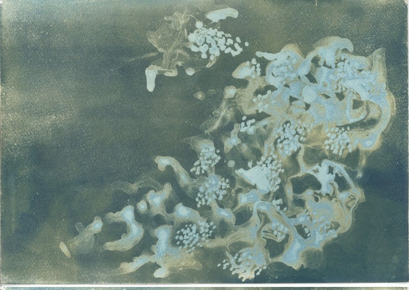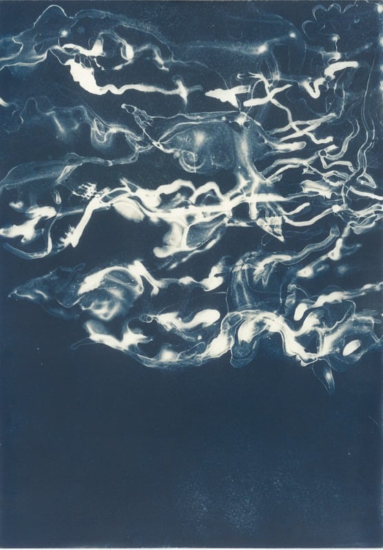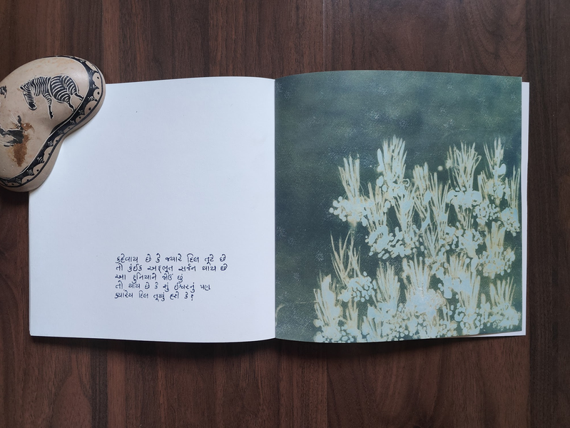 Pele Par (On the Other Side) is a compilation of cyanotype visuals and poems—exploring ecological representation through visual art and poetry writing. The visuals, created through the cyanotype process, respond to embodied impressions formed during time spent by the Kaveri river. They reflect imagery and sensations deeply rooted in those experiences, while also drawing from broader ecological memories across landscapes. The writings reflect how the narration of nature is often interwoven with emotion, giving the landscape an animated, living quality. Together, the poems and images evoke a sensory and emotional exploration of presence, memory, and place.